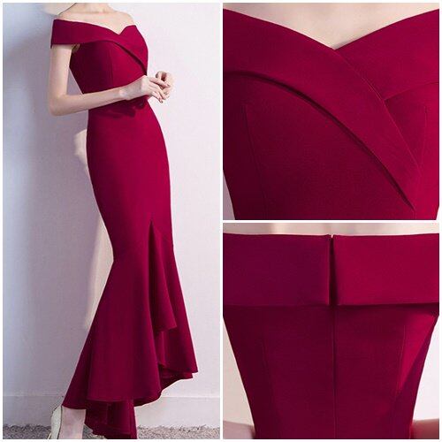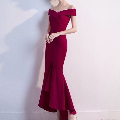 パーティードレス 結婚式 二次会 発表会 お呼ばれ パーティー 発表会 演奏会 ロング丈 黒 マーメイド フィッシュテール フリル オフショルダー タイト 大きいサイズ パーティードレス 結婚式