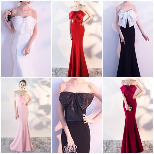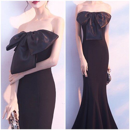 パーティードレス イブニングドレス 結婚式 二次会 発表会 演奏会 お呼ばれ パーティー マキシ丈 黒 マーメイド リボン ベアトップ チューブトップ 背中見せ タイト 大きいサイズ パーティードレス