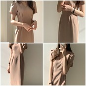 チューリップ袖がかわいいミモレ丈ワンピース。