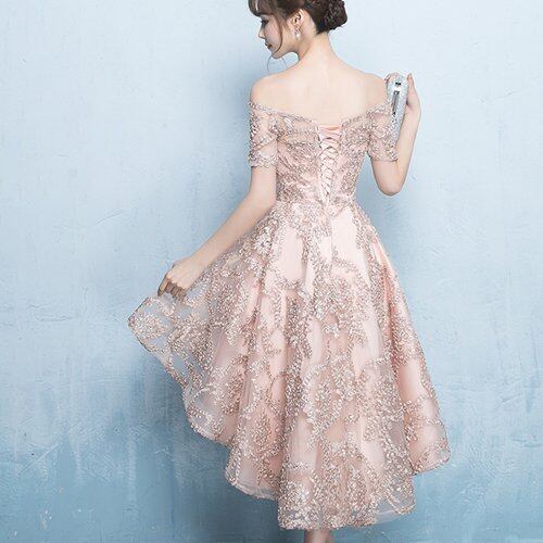 パーティードレス 結婚式 二次会 発表会 演奏会 お呼ばれ パーティー フィッシュテール 刺繍 半袖 シースルー オフショルダー 大きいサイズ バックシャン レースアップ パーティードレス 結婚式
