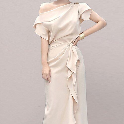 パーティードレス 結婚式 二次会 発表会 お呼ばれ パーティー 無地 ロング丈 ワンショルダー フリル セットアップ エレガント パーティードレス 結婚式 二次会 発表会 お呼ばれ パーティー 無地