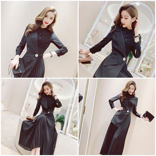 ジャケットを羽織ったようなデザインが個性的なロングワンピース。