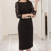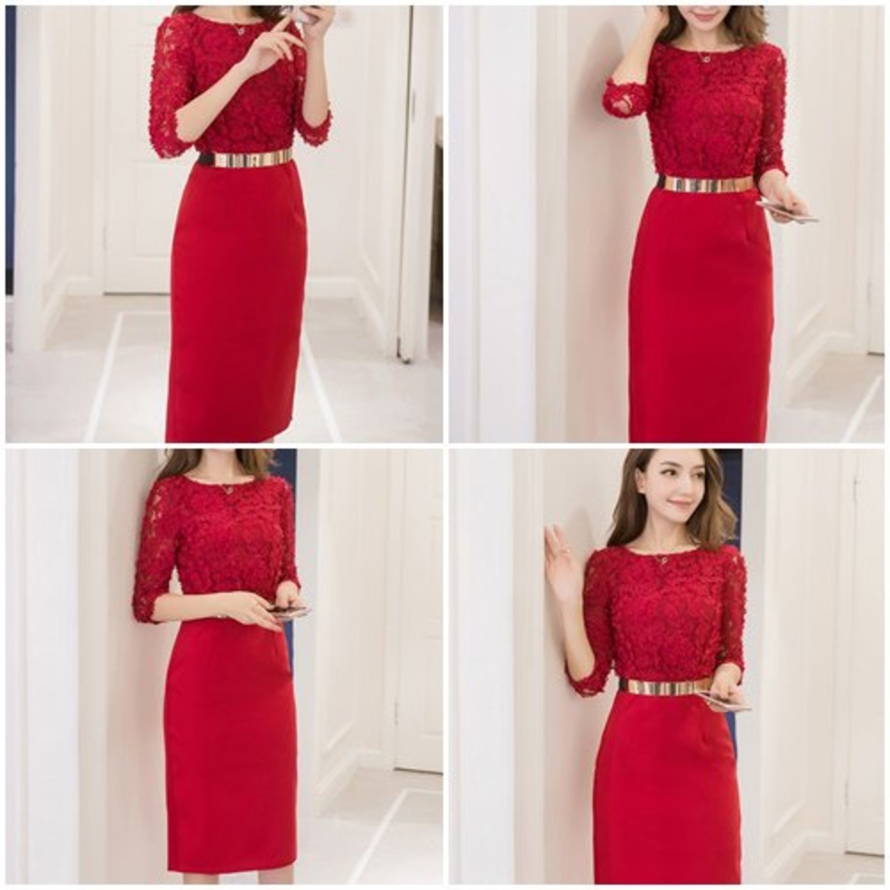 パーティードレス 結婚式 二次会 同窓会 謝恩会 発表会 お呼ばれ 膝丈ワンピース 黒 レース ベルト 大きいサイズ エレガント ボートネック 七分袖 パーティードレス 結婚式 二次会 同窓会 謝恩会