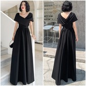 パーティードレス 結婚式 二次会 発表会 演奏会 お呼ばれ マキシ丈 黒 大きいサイズ バックシャン 体型カバー パーティードレス 結婚式 二次会 発表会 演奏会 お呼ばれ マキシ丈 黒 大きいサイズ