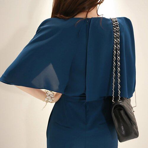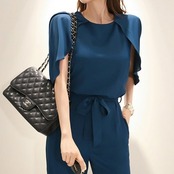 ケープ風のトップスが個性的な大人かっこいいパンツドレス。