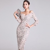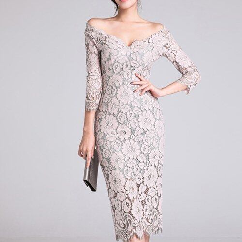 パーティードレス 結婚式 お呼ばれ パーティー キャバドレス セクシー タイト ワンピース 花柄 オフショルダー レース 七分袖 スリット パーティードレス 結婚式 お呼ばれ パーティー キャバドレス