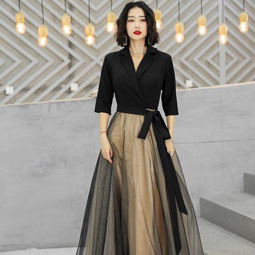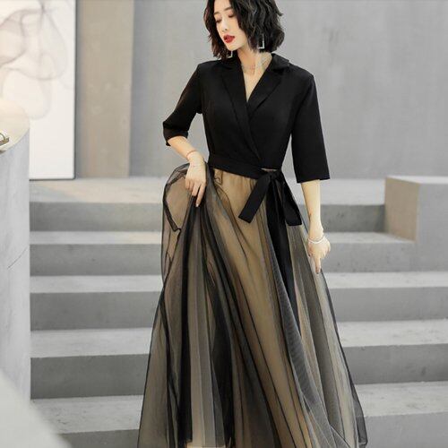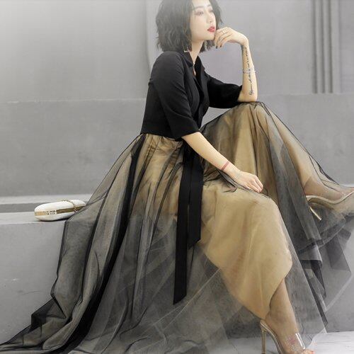 パーティードレス 結婚式 二次会 発表会 演奏会 お呼ばれ マキシ丈 Aライン チュール 七分袖 Vネック パーティードレス 結婚式 二次会 発表会 演奏会 お呼ばれ マキシ丈 Aライン チュール
