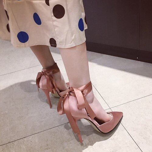 結婚式 パンプス ヒールパンプス ポインテッドトゥ リボン ベルト サテン生地 結婚式用 パーティ 二次会 大きいサイズ 結婚式 パンプス ヒールパンプス ポインテッドトゥ リボン ベルト サテン生地