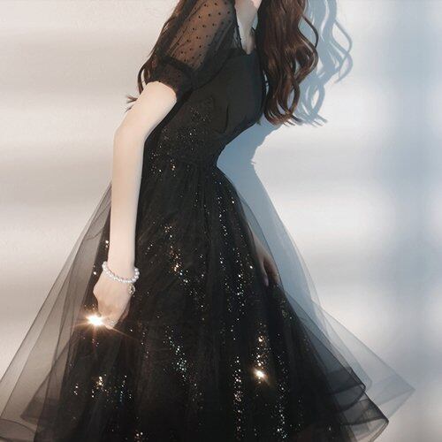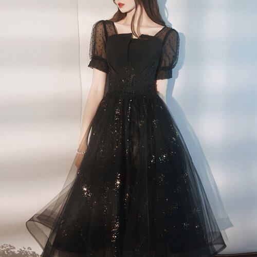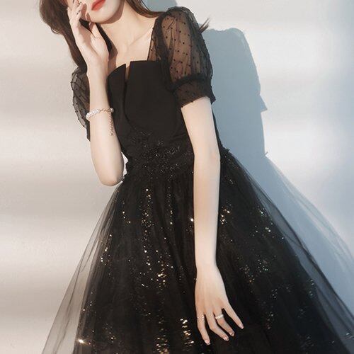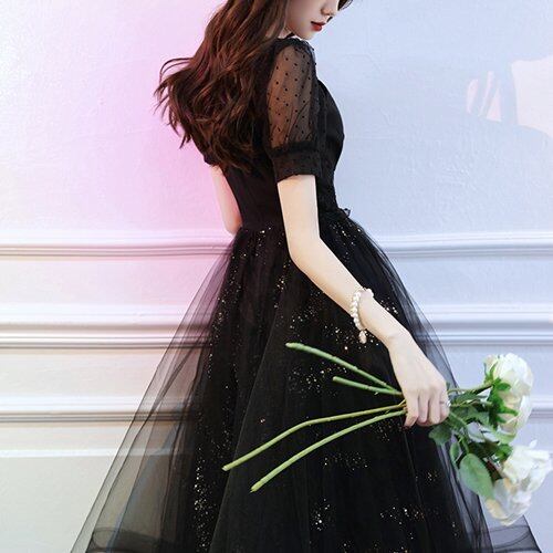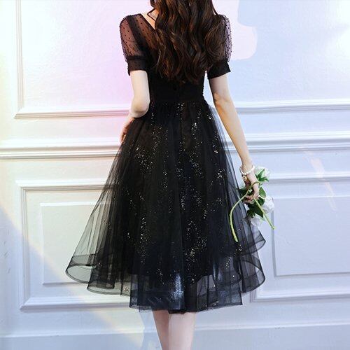 パーティードレス 結婚式 二次会 同窓会 お呼ばれ パーティー ワンピース 膝丈 チュール シースルー 半袖 ドット柄 パーティードレス 結婚式 二次会 同窓会 お呼ばれ パーティー ワンピース 膝丈