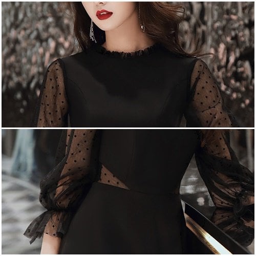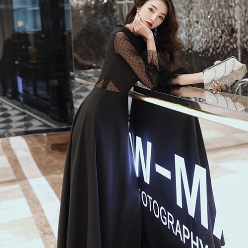 パーティードレス 結婚式 二次会 パーティー お呼ばれ ワンピース ロング丈 異素材 シースルー 長袖 プチドット柄 大きいサイズ パーティードレス 結婚式 二次会 パーティー お呼ばれ ワンピース