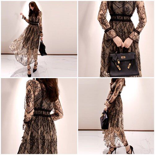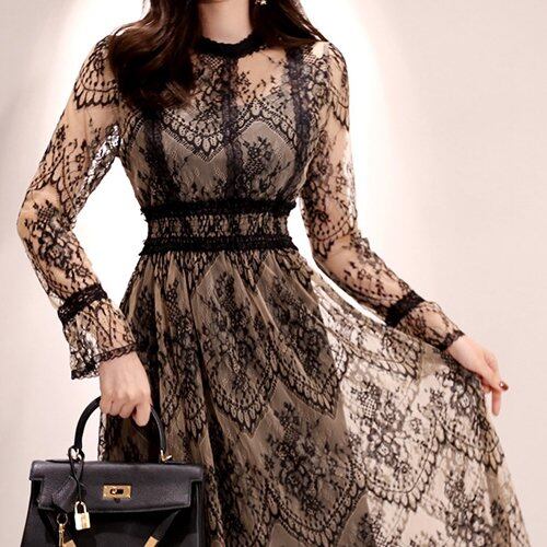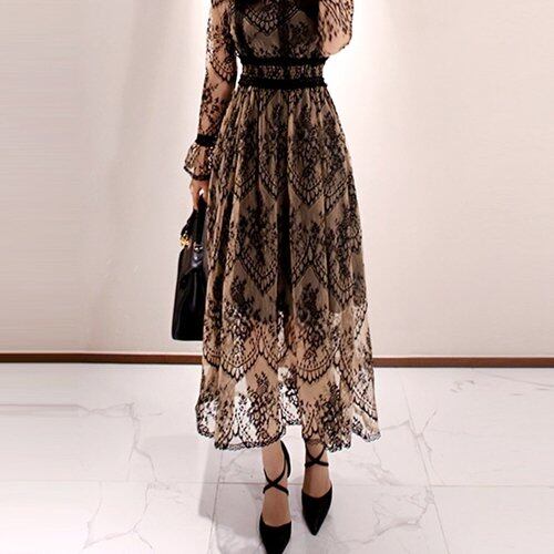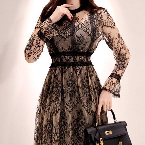 総レースデザインが上品なミモレ丈ワンピース。