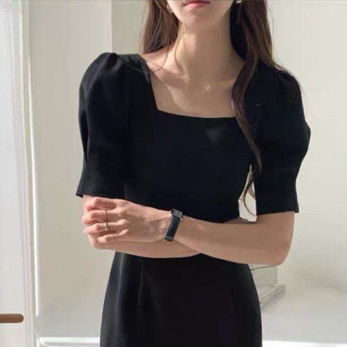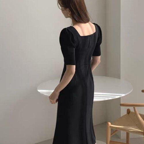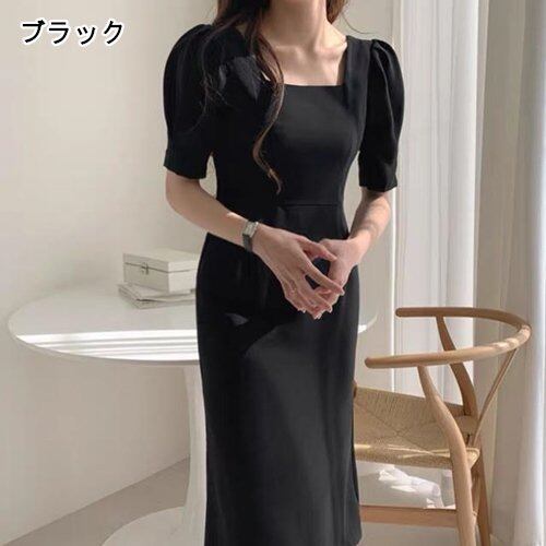 パーティードレス 結婚式 二次会 お呼ばれ パーティー ワンピース ミモレ丈 半袖 スクエアネック パフスリーブ パーティードレス 結婚式 二次会 お呼ばれ パーティー ワンピース ミモレ丈 半袖