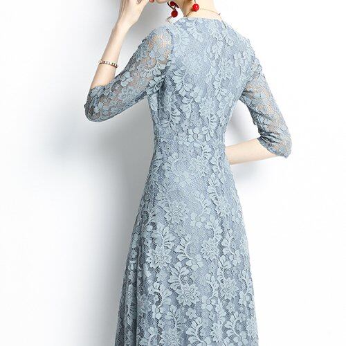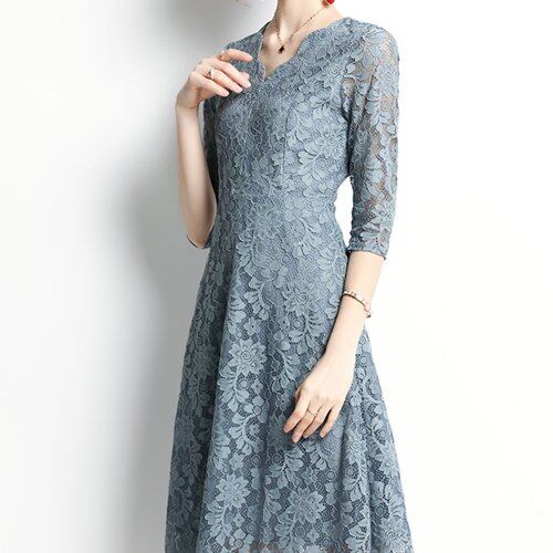 パーティードレス 結婚式 二次会 お呼ばれ パーティー 膝丈 ワンピース Vネック 総レース 七分袖 大きいサイズ パーティードレス 結婚式 二次会 お呼ばれ パーティー 膝丈 ワンピース Vネック