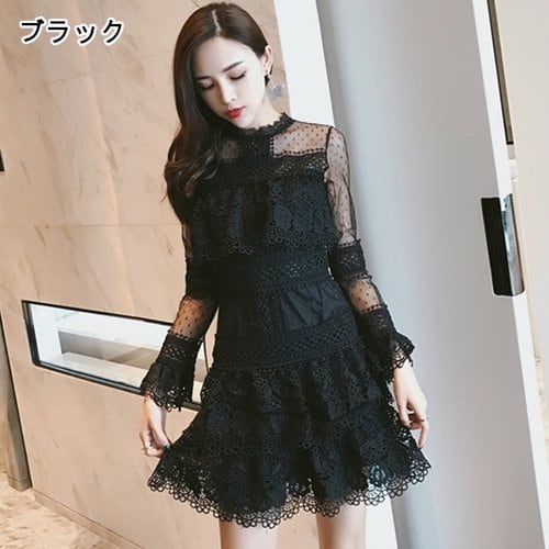 パーティードレス 結婚式 二次会 お呼ばれ パーティー ミニワンピース レース シースルー プチドット柄 パーティードレス 結婚式 二次会 お呼ばれ パーティー ミニワンピース レース シースルー