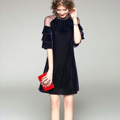 パーティードレス 結婚式 二次会 お呼ばれ パーティー ワンピース ミニ ベルベット フリル シースルー 異素材 パーティードレス 結婚式 二次会 お呼ばれ パーティー ワンピース ミニ ベルベット