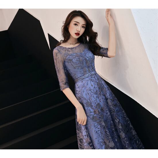 演奏会ドレス ロングドレス 大きいサイズ 2XL イブニングドレス 袖あり ロングスカート スリムフィット Uネック 花柄 お呼ばれ フレアスカート エレガント 演奏会ドレス ロングドレス パーティー