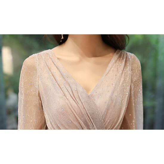 演奏会ドレス ロングドレス 大きいサイズ 2XL 小さいサイズ イブニングドレス Aラインスカート ランタンスリーブ Vネック エレガント スパンコール フォーマル 演奏会ドレス ロングドレス
