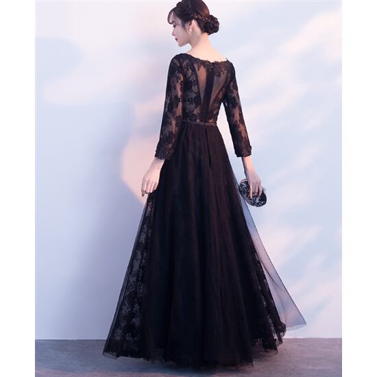 演奏会ドレス ロングドレス 大きいサイズ 2XL 長袖 ロングスカート Uネック エレガント Aラインスカート イブニングドレス お呼ばれ ブラック 結婚式 フォーマル 演奏会ドレス ロングドレス