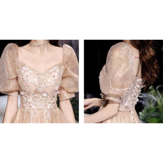 演奏会ドレス ロングドレス 大きいサイズ 2XL 3XL 小さいサイズ 半袖 チュチュスカート ハイウエスト 花柄 ロングスカート エレガント ランタンスリーブ 体型カバー 演奏会ドレス Aライン