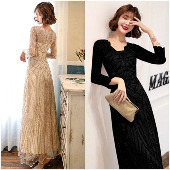 演奏会ドレス ロングドレス 大きいサイズ 2XL 小さいサイズ エレガント ゴージャス スリムフィット スパンコール Vネック ロングスカート お呼ばれ 結婚式 フォーマル 発表会 演奏会ドレス
