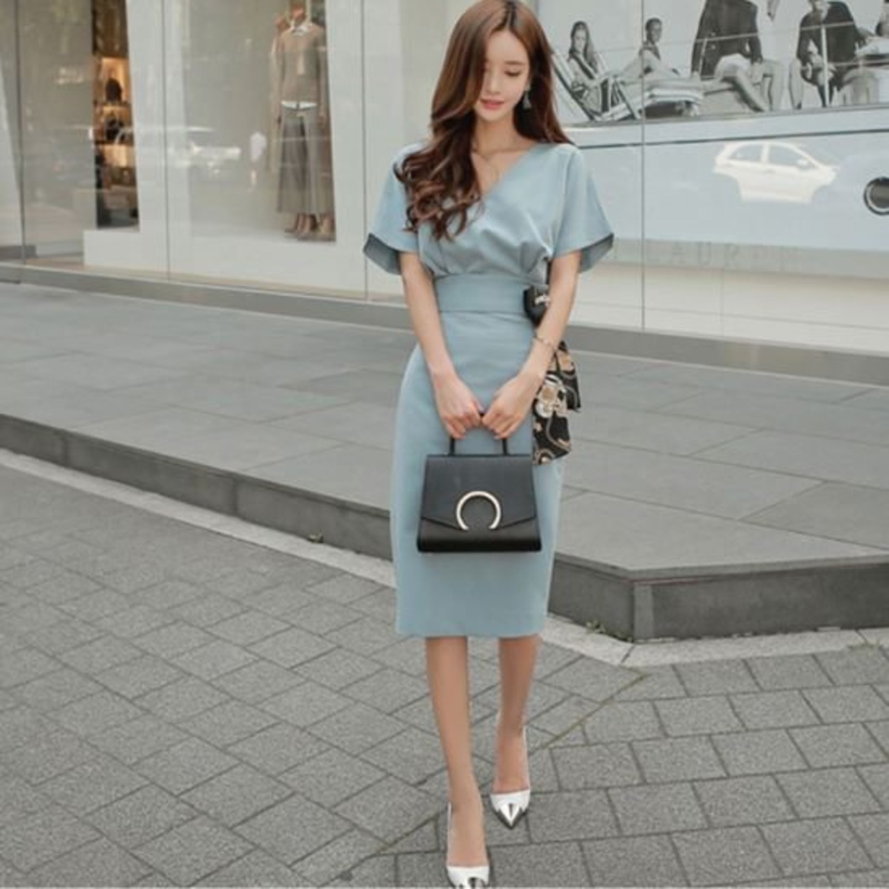 結婚式ドレス パーティードレス 結婚式 二次会 謝恩会 女子会 ひざ丈 スカーフ 無地 半袖 大きさサイズ XL ひざ丈ドレス エレガントドレス ブルー レッド 大人っぽい レディース Vネック