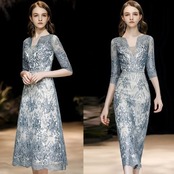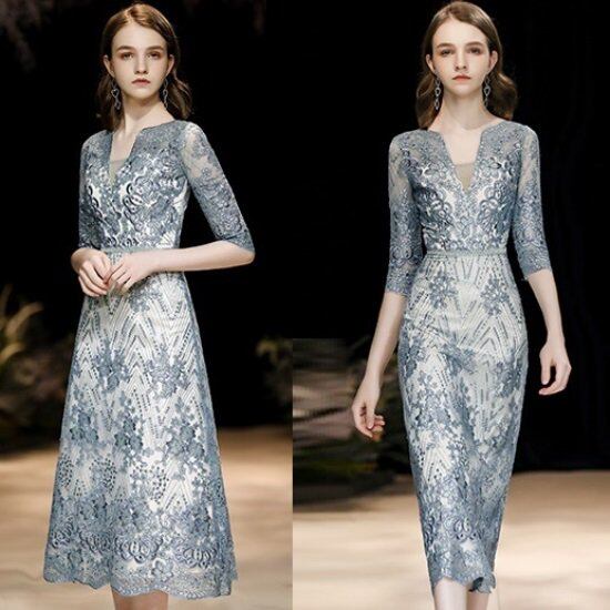ドレス ワンピース レディース 花柄 刺繍 7分袖 シアー袖 エレガント ハイウエスト 結婚式 パーティ お呼ばれ シック ドレス ワンピース レディース 花柄 刺繍 7分袖 シアー袖 エレガント