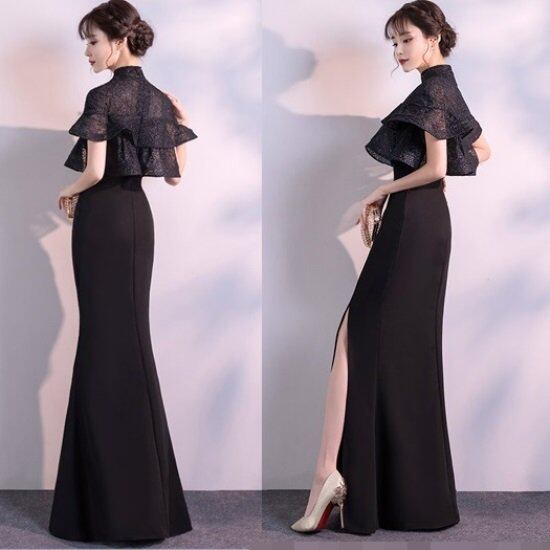 異素材を組み合わせた モダンな雰囲気が漂うイブニングドレス