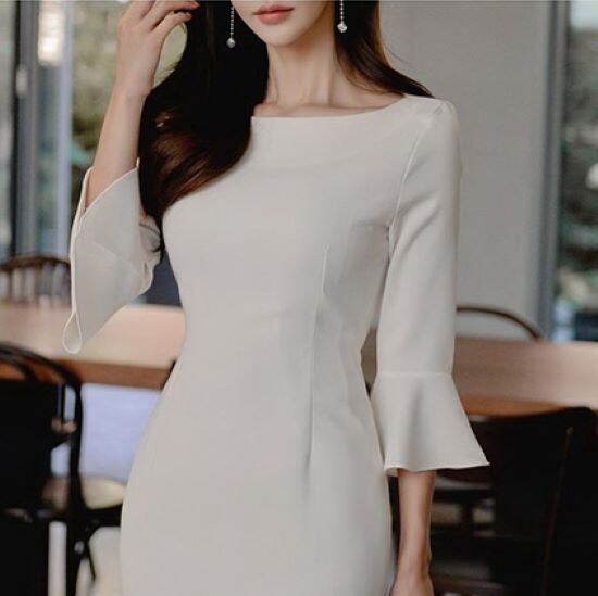 結婚式ドレス パーティードレス レディース 結婚式 二次会 謝恩会 女子会 ホワイト 異素材ミックス 裾レース タイトスカート シンプル エレガント 大人女子 大きいサイズ XL 7分袖 無地