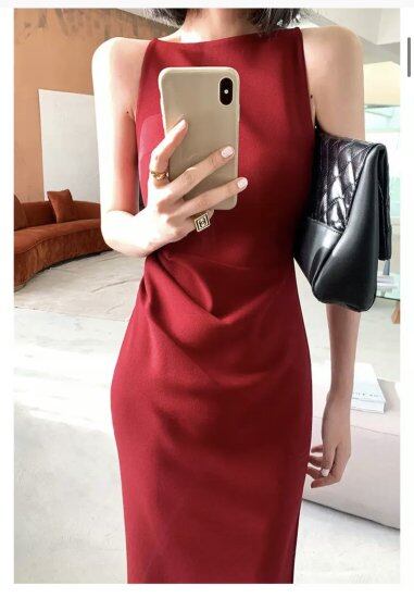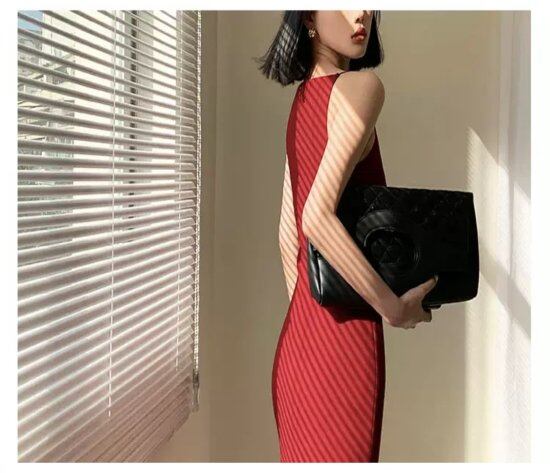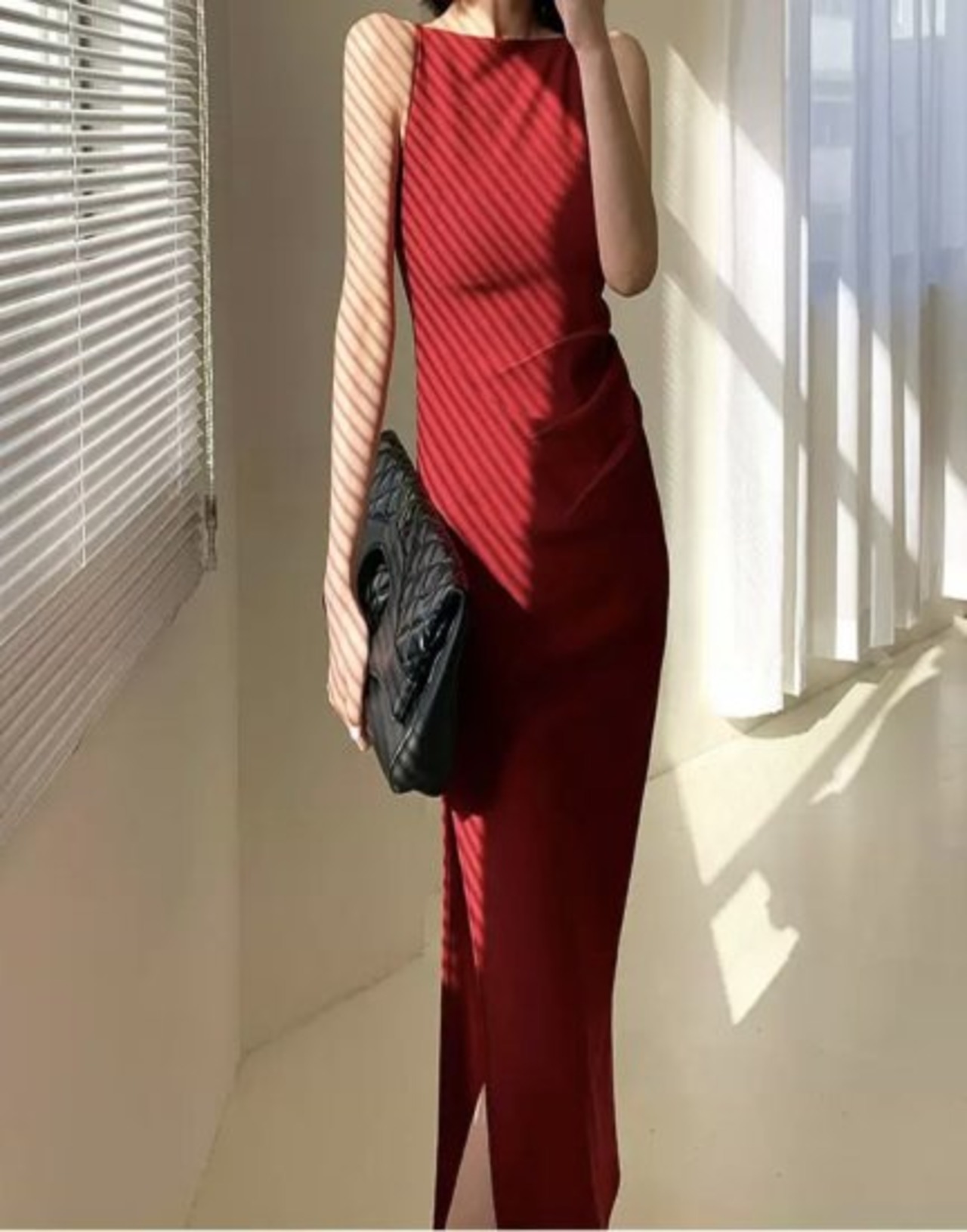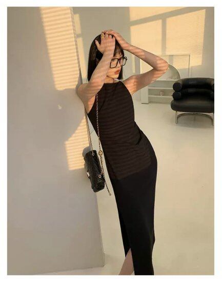 シンプルなタイトロングワンピース。