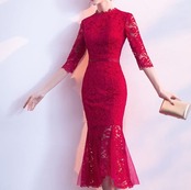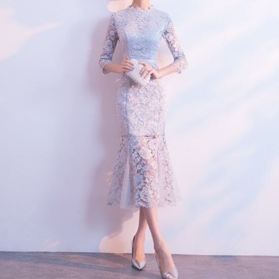 結婚式ドレス 総レース マーメイドライン パーティードレス 結婚式 二次会 謝恩会 女子会 マーメイドドレス タイト レディース エレガント 大きいサイズ 3XL ひざ丈 単色 豊富なカラー 七分袖