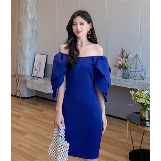 結婚式ドレス ヒップドレス ワンピース 夏服 半袖 ミッドスカート ハイウエスト レトロ 無地 蓮の葉スリーブ エレガント セクシー おしゃれ お呼ばれ 大きいサイズ きれいめ フォーマル 結婚式