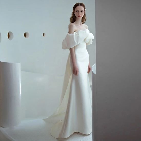 結婚式ドレス パーティードレス 結婚式 二次会 純白 ウエディングドレス ロングドレス 無地 シルクサテン 大きいサイズ 2XL エレガント ブライダル パーティー レディース イブニングドレス