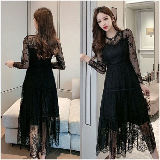 花柄総レースがお洒落なカジュアルワンピースドレスです。