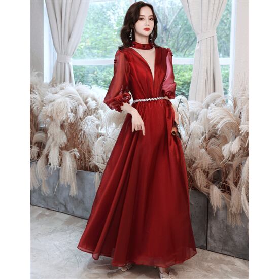 透け感のあるバルーンスリーブがお洒落なロングドレスです。