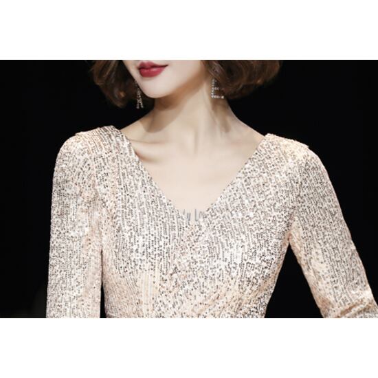 ゴージャスで特別感を与えてくれるデザインのロングドレスです。