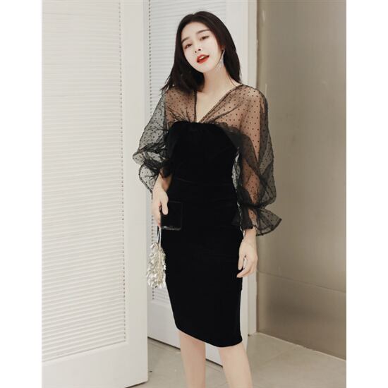 結婚式ドレス 体型カバー ハイウエスト 長袖 レトロ パーティードレス フラワースリーブ ドッキングワンピ タイトスカート レース およばれ きれいめ エレガント レディースワンピース ミドル丈