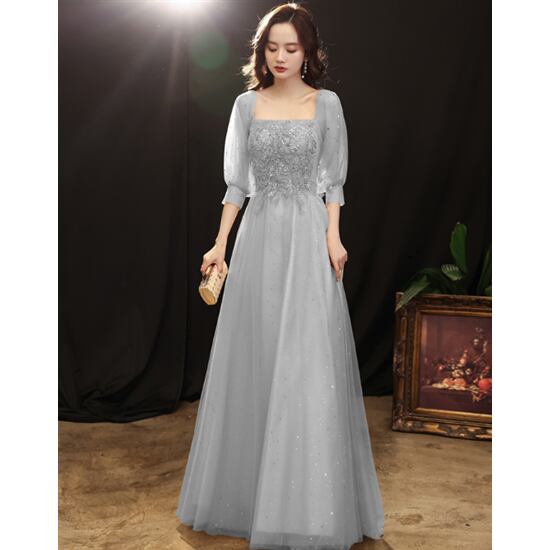 演奏会ドレス 結婚式ドレス ロングドレス 大きいサイズ XL-5XL スクエアネック 半袖 Aラインスカート スリムフィット エレガント 体型カバー スパンコール お呼ばれ フォーマル きれいめ