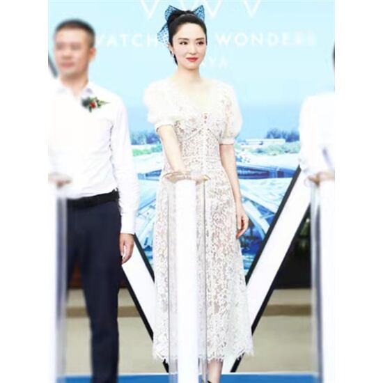 結婚式ドレス 半袖ワンピース Vネック 総レース パフ袖 上品 大人可愛い お呼ばれ 結婚式 フォーマル きれいめ ミドル丈 体型カバー ロングワンピース フェアリースカート エレガント おしゃれ