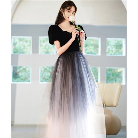 演奏会ドレス ロングドレス 大きいサイズ XL-3XL 小さいサイズ XS 半袖 チュチュスカート パーティードレス ロングスカート パフ袖 ボリュームスカート エレガント 上品 セレモニードレス