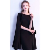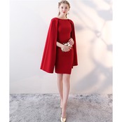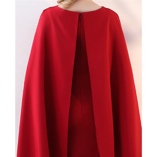 結婚式ドレス 大きいサイズ XL 2XL ケープ Uネック フライングスリーブ 体型カバー 無地 長袖 お呼ばれ フォーマル ノースリーブ タイト レディースワンピース ワンピースドレス エレガント