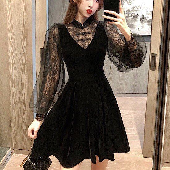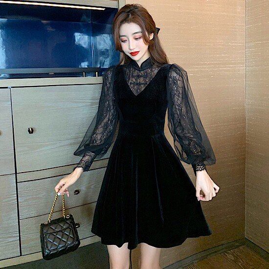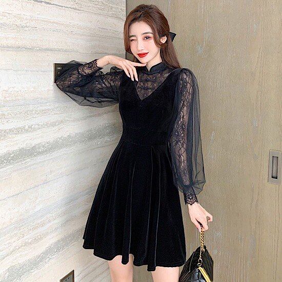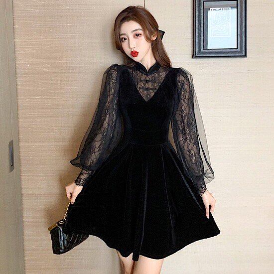 パーティードレス ワンピース ドレス パーティー 膝丈 体型カバー 大きいサイズ 二次会 結婚式 お呼ばれ ドレス 袖あり フォーマルドレス 同窓会 低身長 ワンピース レディース レース ドレス