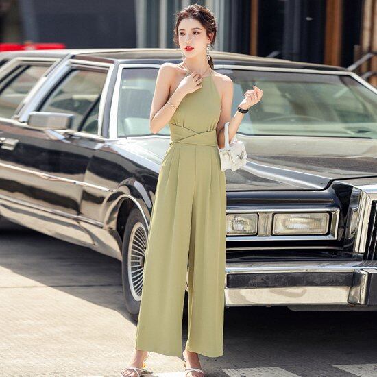オールインワン ジャンプスーツ レディース フォーマル きれいめ パンツドレス ノースリーブ ワイドパンツ ウエストリボン ハイウエスト エレガント オールインワン ジャンプスーツ レディース