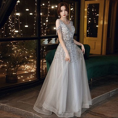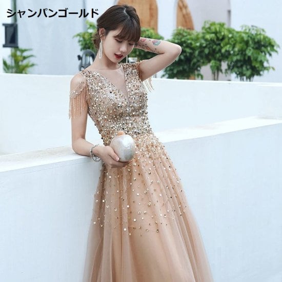 演奏会ドレス パーティードレス 結婚式ドレス レディース ワンピースドレス エレガント Vネック イブニングドレス ロングドレス スパンコール お呼ばれ Aライン きれいめ 演奏会ドレス パーティー