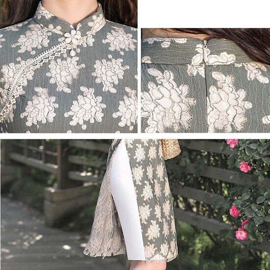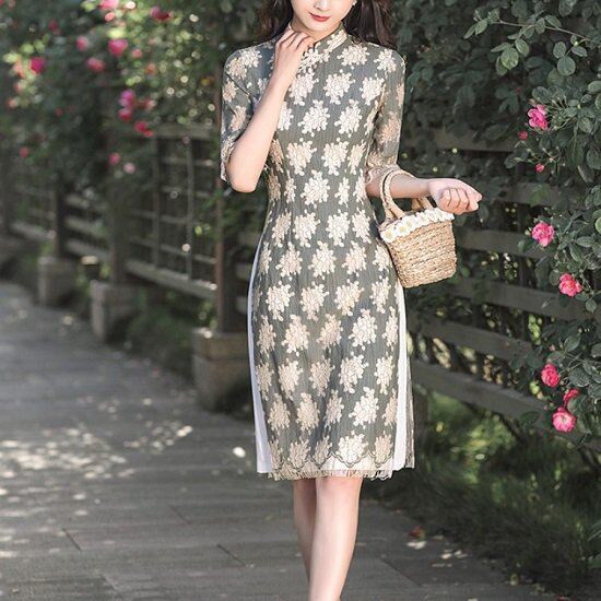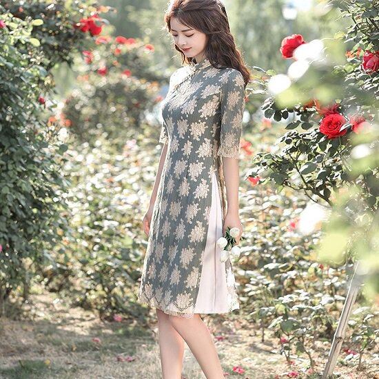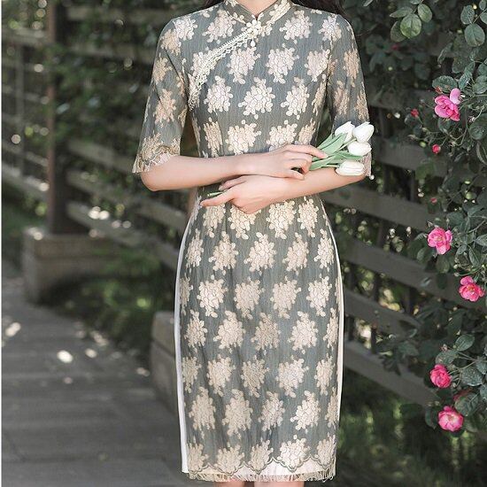 チャイナドレス レディース 膝丈 かわいい ドレス レディース ミモレ丈 花柄 チャイナドレス レディース タイト スリット 七分袖 チャイナドレス レディース 膝丈 かわいい ドレス ミモレ丈