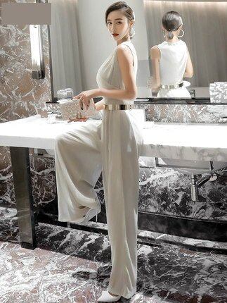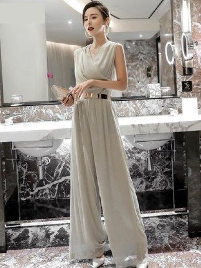 【取寄】パーティードレス オールインワン ジャンプスーツ きれいめ Vネック ノースリーブ 結婚式ドレス お呼ばれ エレガント パーティードレス オールインワン ジャンプスーツ レディース