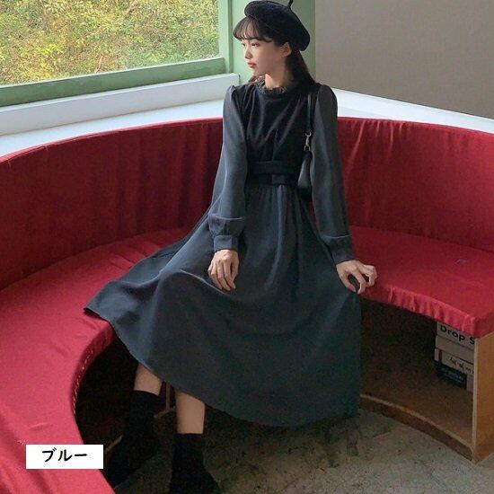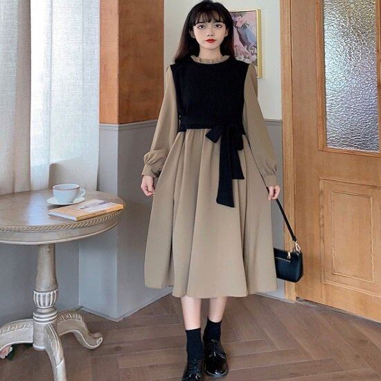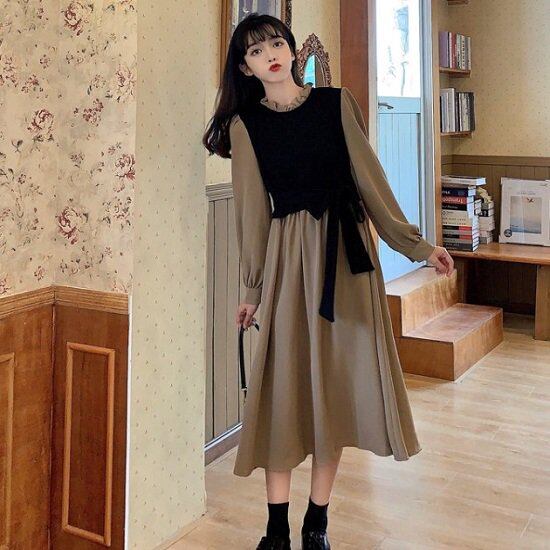 ドレス ワンピース お呼ばれ 二次会 おしゃれ ワンピースドレス レディース ミモレ丈 大きいサイズ マタニティ バイカラー ドレス ワンピース 長袖 体型カバー ハイウエスト かわいい 大人