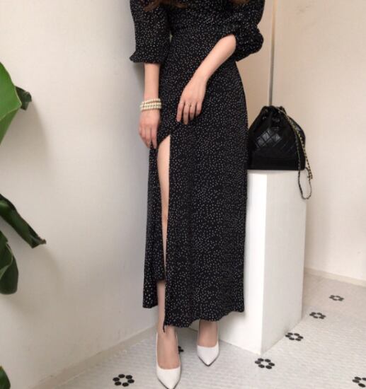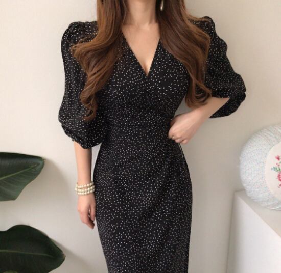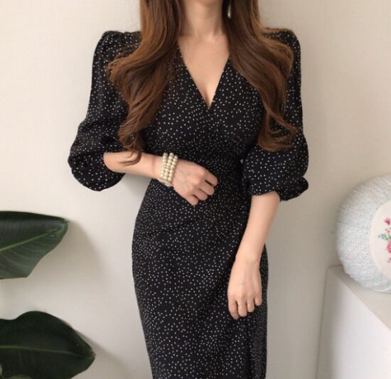 パーティードレス レディース 結婚式ドレス 演奏会ドレス フォーマルドレス ワンピース Vネック ハイウエスト 水玉 ドット柄 きれいめ おしゃれ お出掛け エレガント シック パーティードレス