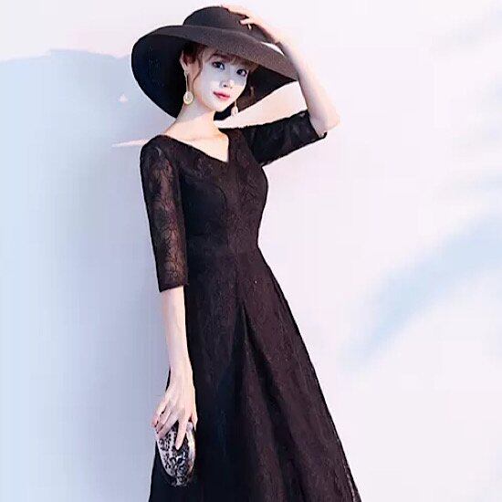 パーティードレス イブニングドレス レース ミモレ丈 結婚式ドレス Vネック 発表会 演奏会 レディース フレアドレス 結婚式 ステージ衣装 エレガント ウエディングドレス カラードレス デコルテ