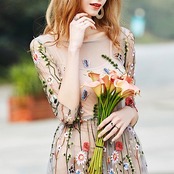 シアーな素材感とニュアンスカラーでまとめた大人のためのロマンティックドレス。
