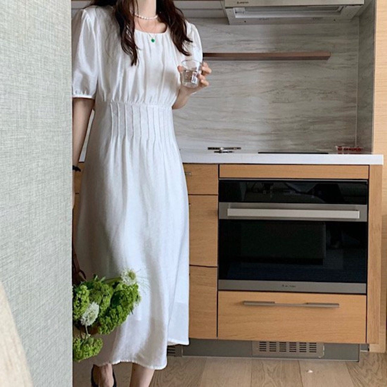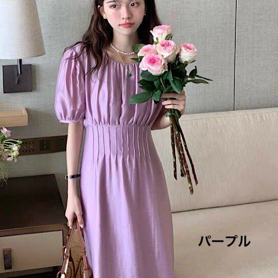 結婚式ドレス パフスリーブ フレンチ ラウンドネック ガーリー デコルテ 発表会 演奏会 レディース 結婚式 ステージ衣装 半袖 ロング丈 エレガント ウエディングドレス カラードレス シンプル